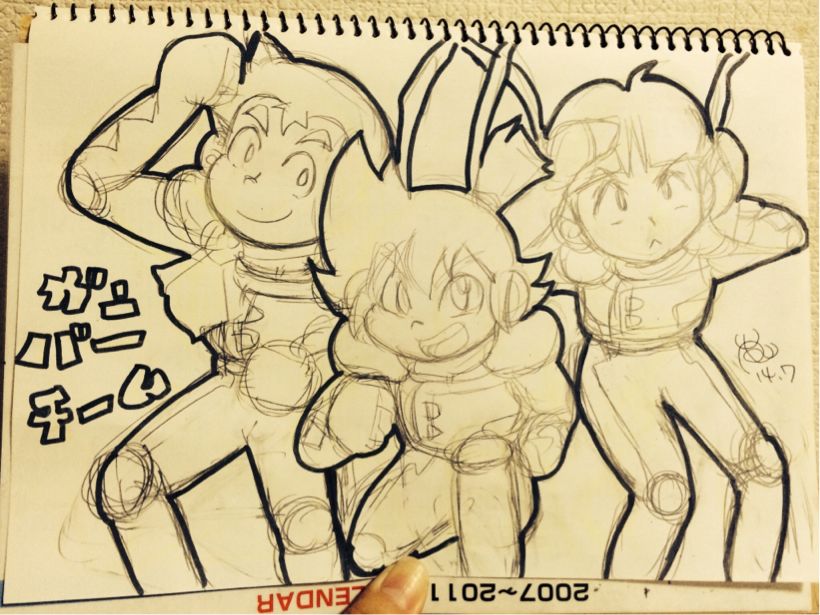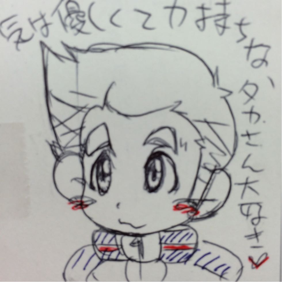 久々だったので、皆大きくなっちゃいました^^; 仕事の休み時間に10分で描いた、虎太郎。 三人の中では、一番描きやすいです。 仕事の休み時間に10分で描いた、力哉。 次に描きやすい。 仕事の休み時間に10分で描いた、鷹介。 鷹ちゃんは、髪型が難しいです。 仕事の休み時間に20分で描いた、ヤミノリウス3世。 皆大好き、ヤミノさん! とっちの衣装も、ソラでは描けませんが、描いていて楽しいです(^∇^) 30分で描いた、ガンバルガーのつままれシリーズ。 決めポーズの模写。 力哉。 最終回で好きなシーン。 力哉と哲哉。 仕事の休み時間に20分で描いた、力哉。 哲哉出前の回。 良い話で好きです。 力哉の『哲哉…』と言う囁きが、とても優しくて、大好きです。 寝る前に30分で描いた、ワンドロならぬ、ハーフドロのガンバーチーム。 私が描く三人は大体、スーツ姿でメットオフです。 やはりこのスーツのデザインが、大好きだからでしょうかね(^ν^) 6月28日に描いたやつに比べて、ちゃんと小さくなってます。 理想は3.5〜4頭身です。 仕事の休み時間に10分で描いた、力哉と桂さん。 もし、正体がバレた後で今までみたいに、助ける事があったのなら…。 意識してしまって、桂さんが照れてしまいそうですね。 力哉さんは相変わらず。 虎太郎と千夏は喧嘩、鷹介と百合香ちゃんはラブラブで! pixivで読んだ、ガンバルガー小説に大変萌えて悶えた私です。 イイぞもっとやれ! |